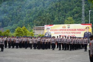 Kabid Humas Polda Papua Barat Kombes Pol Ignatius Beny Ady Prabowo,S.I.K.,M.Kom menerangkan dalam sambutan Kapolda Papua Barat menyampaikan ucapan selamat kepada seluruh personel yang telah menerima kenaikan pangkat. Ia menegaskan bahwa kenaikan pangkat merupakan bentuk kepercayaan dari institusi Polri yang harus dijawab dengan peningkatan tanggung jawab dan kinerja.