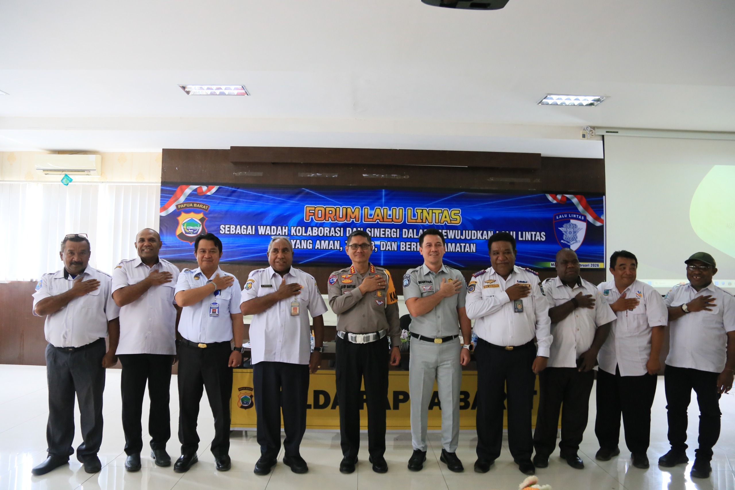 Direktorat Lalu Lintas Polda Papua Barat menggelar kegiatan Forum Lalu Lintas sebagai wadah kolaborasi dan sinergi antar instansi dalam mewujudkan lalu lintas yang aman, tertib, dan berkeselamatan bertempat di ruangan Pianemo pada Rabu (11/02/2026).