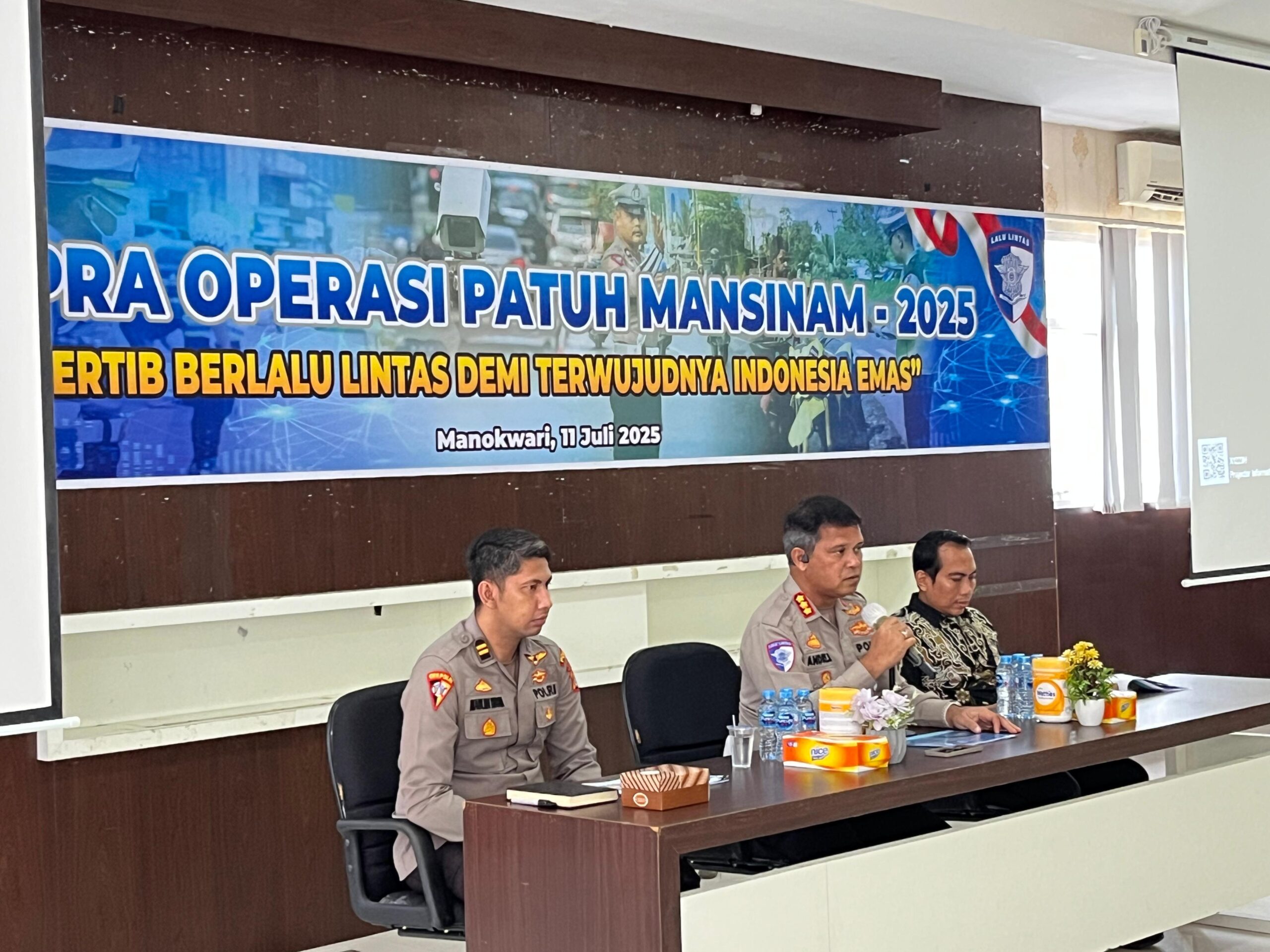 Direktorat Lalu Lintas Kepolisian Daerah Papua Barat melaksanakan kegiatan Latihan Pra Operasi (Latpraops) Patuh Mansinam Tahun 2025 yang berlangsung di Ruang Pyanemo Polda Papua Barat mulai Pukul 10.00 WIT hingga selesai Jumat, (11/7/25).