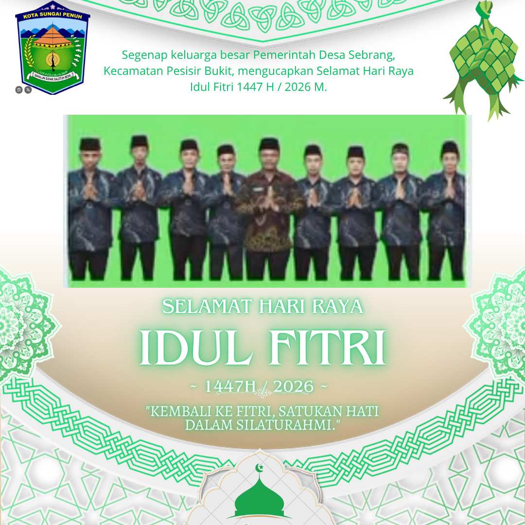 Suasana hangat penuh kebersamaan menyelimuti momen kemenangan yang dinanti umat Muslim di seluruh penjuru negeri. Dalam nuansa fitri yang sarat makna, segenap keluarga besar Pemerintah Desa Sebrang, Kecamatan Pesisir Bukit, turut menyampaikan ucapan tulus di Hari Raya Idul Fitri 1447 Hijriah / 2026 Masehi.